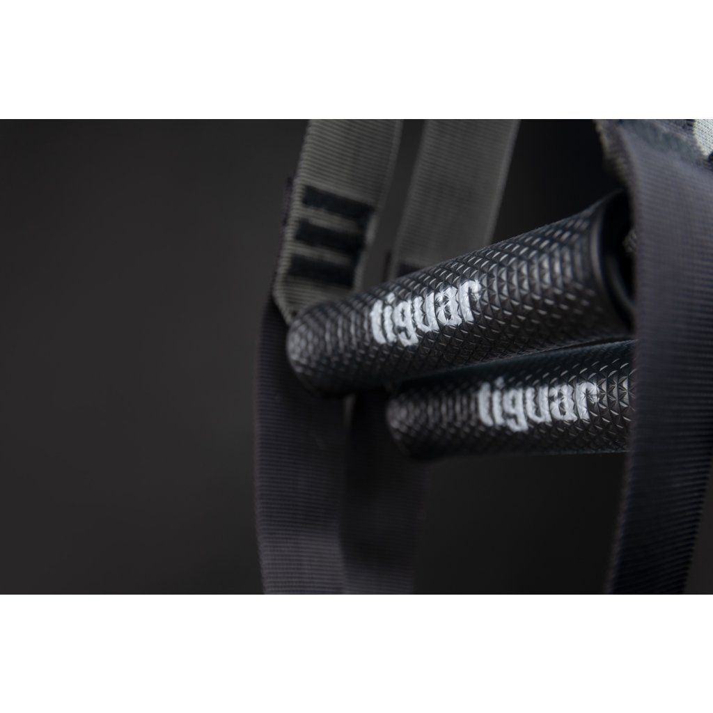 - Popruhy se speciálně navrženou vazbou jsou tkané přímo v Evropě. Při výrobě se spolupracovalo s výrobcem slaňovacích popruhů, což znamená, že popruhy Tiguar si zachovávají nejvyšší bezpečnostní standardy.